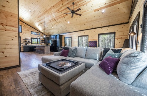 Off the living area you will find a full-size foosball table, giant connect 4 and an arcade console complete with over 200 classic arcade games. If you enjoy playing games and not having to decide what to do next... than this cabin is for you. Between the board games, corn hole, ring hook and table top shuffle board you can spend hours having fun and making memories.