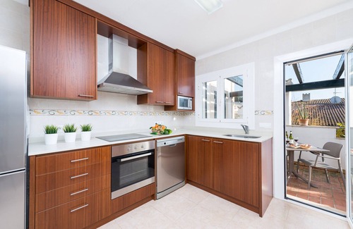 Great seafront apartment at only two steps from the sandy beach in one of the quietest residential areas of Alcúdia, overlooking the bay of Pollença and Cap Formentor.The spectacular sunset views from the large terrace and dining room will surprise you with romantic afternoons. The apartment is located on the first floor of a two storey villa. The ground floor belongs to another owner. The house counts with its' compulsory vacation rental license. This place is ideal for tranquility, long walks along the coast and enjoying the sea without crowds.The modernly furnished villa counts with 3 luminous double bedrooms (one with two single beds and en-suite shower room and two with a double bed) and another bathroom with shower for general use. The large independent kitchen is well equipped with a ceramic hob, electric oven, dishwasher, microwave, fridge, coffee maker and any other utensils you might need to prepare an excellent dinner during your stay. The comfortable living- and dining room with sea- and mountain view is fitted with a sofa and two big armchairs to enjoy a good movie or relax during the warmest hours of the day. From the living- and dining room you access the large, west-facing terrace to enjoy the sunset. On the other side, with exit from the kitchen, there is another terrace, to enjoy breakfast in the Mediterranean sun. The apartment is equipped with wifi and air conditioning (hot and cold). The fireplace is merely decorative (can not be used). For a baby up to 2 years old we can prepare a cot and a highchair without additional cost (on previous request).The apartment is located in the north of the island, on the coast of the bay of Pollença. It is perfect for water sports such as canoeing, fishing or diving and discover the reefs of the bay. The nearest supermarkets, restaurants and shops are in Alcúdia (15 minutes on foot), one of the most historic and beautiful cities of the north coast of Mallorca. You can walk along the coast to Es Barcarès, 5 minutes from the apartment, a residential coast area with small beaches and coves, ideal for a walk. It is also very close to the Mal Pas, where the beautiful natural sandy coves of Sant Joan and Sant Pere are perfect for the whole family. It is 20 minutes walk from the coast of Bonaire, where you can explore small virgin coves.The house is perfect for a quiet holiday, whether you travel as a couple or family away from tourist crowds and noise. Delight yourself by the sound of the waves and the wonderful views of the Mediterranean Sea by choosing Sunset Villa Nixe for your holiday: you will not be disappointed!- Tourist tax not included.From May to October, it costs €2.20 per person, from 16 years and over, per night.From November to April, it costs €0.55 per person, from 16 years and over, per night.