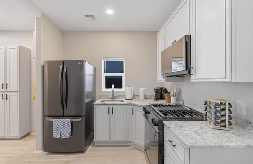 The whole group will enjoy easy access to everything that this historic adobe-built home has to offer. This historic Armory Park three-bedroom and one-bathroom apartment features all the modern amenities, including central air conditioning and heating, a full kitchen, and bathroom essentials. Located just minutes away from historic city landmarks, the Tucson museums, and the University of Arizona. Local gourmet food options and entertainment venues are nearby. Free curbside parking