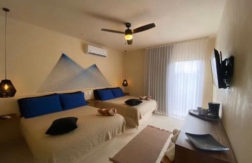 Sunsteps casa holbox offers accommodations in Holbox Island, a 3-minute walk from Playa Holbox. Among the facilities at this property are full-day security and luggage storage space, along with free Wifi throughout the property. The rooftop pool features a fence. The apartment complex will provide guests with air-conditioned units offering a desk, a coffee machine, a fridge, a safety deposit box, a flat-screen TV, a terrace, and a private bathroom with a shower. A balcony with an outdoor dining area and garden views is offered in all units. At the apartment complex, the units come with bed linen and towels. Sightseeing tours are available in the surrounding area. A bicycle rental service is available at the apartment.