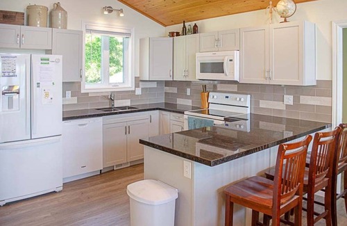 The cottage features a well-appointed kitchen with modern appliances and generous counter space overlooking the family room, ensuring whoever is preparing meals and snacks won't miss out on any fun.