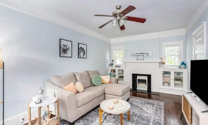 Discover your next cozy home in the heart of New Smyrna Beach, with a stylish interior, a fully equipped kitchen where modern appliances await, and a welcoming living room boasting a gas fireplace and a 50” HDTV to create an intimate atmosphere. Rest in the queen bedroom with an ensuite ready to refresh and rejuvenate yourself for the next upcoming day of fun. It's your ideal home base for this beautiful coastal locale.