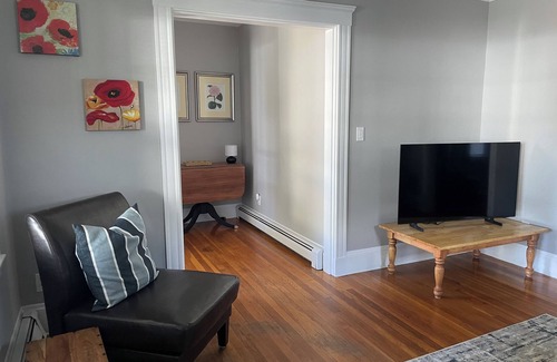 Private 2 Bedroom close to Boston! Enjoy the entire private 1st-floor apartment of this home built in 1910. This home has updated amenities while keeping the charm of the original design. This 1200 sq feet of living space has a beautiful, private porch to enjoy the outdoors. This home is located within walking distance to a quaint downtown full of great restaurants and shops. This location is great for people looking to visit Boston, Encore Casino, Salem and New England.