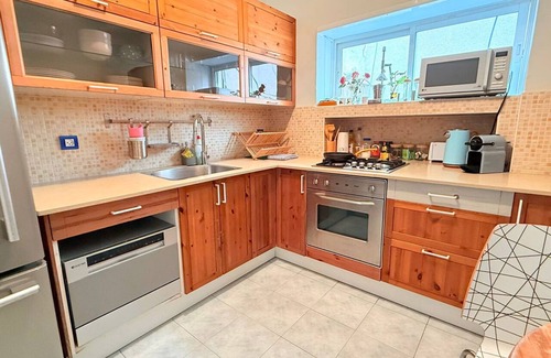 Fully equiped kitchen to prepare all your favorite food and a 24/7 supermarket accross the street.