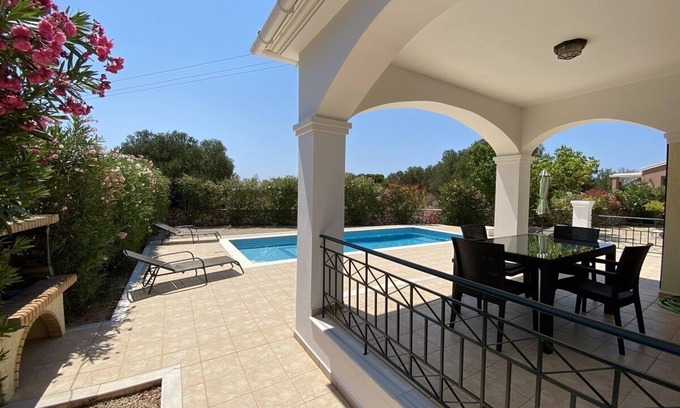 Villa Petra, is an beautifully presented 2 bedroom villa, set on the outskirts of the traditional village of Karavados, with fantastic panoramic views out to the Ionian Sea.