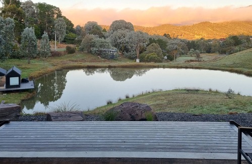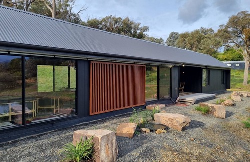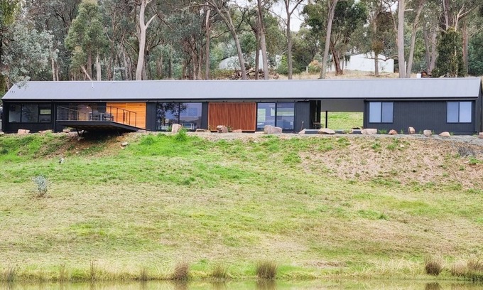 Newly completed and professionally designed with comfort in mind. Dogtrot House is on a 7 acre property with its own fish filled dam, unique Scandi decor and a breathtaking outlook. Only minutes from Lake Eildon and an easy drive to the snow fields, Dogtrot House offers an unparalleled holiday experience. The House sleeps 4 in 3 bedrooms, and you can also rent the on site Water Cabin, separately listed, to increase your numbers.
