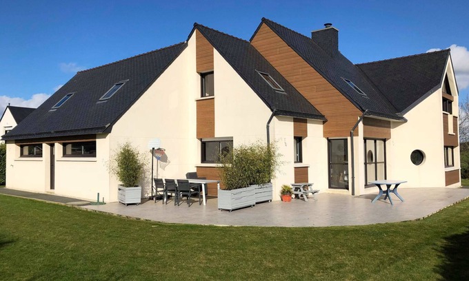 To rent on the commune of Sainte Sève superb house of 220m2 on ground of 1219m2. Located 10 km from the beaches (Carantec) and close to the city center of Morlaix and all the shops. Very tourist place (beaches, enclosures ...). At the junction of the RN12 axis and the Morlaix St Pol Roscoff axis.