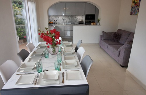 This luxury villa with air conditioning in all bedrooms and living area is in an exclusive residential area in the Costa Blanca. It is a two minute walk from the beautiful "blue flag" beach of Cala Capitan, with its gently shelving soft sand and beach bar. So close, you can hear the sea from the garden. The Villa has been issued with a Superior Category tourist licence from the Valencian government.