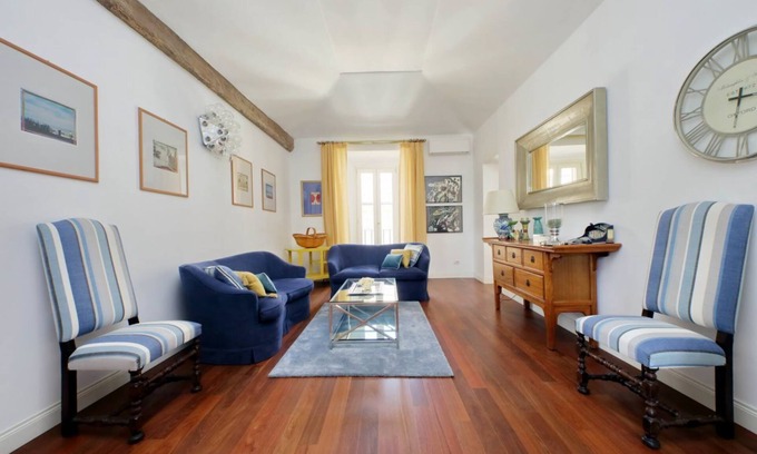 The wonderful penthouse, located in the historic center of Rome, in the immediate vicinity of Piazza Navona, is characterized by extreme silence and a pleasant view of Piazza Fiammetta, where you can see the Dome of St. Peter in the distance. The apartment, renovated and furnished with extreme attention to detail, consists of a large living area of about 50 square meters which houses three brightly colored sofas, one of which is a sofa bed, a table that can accommodate up to 6 people and from a large wall bookcase. From the living area you can access the small balcony where you can enjoy the splendid view of the historic center of Rome near Piazza Navona. Crossing the corridor, you enter the sleeping area, consisting of a bedroom furnished with a double bed, a chest of drawers and a comfortable and spacious walk-in closet. From the bedroom there is direct access to the bathroom with a shower. The kitchen is furnished with fridge-freezer, oven, washing machine, microwave oven and all kinds of utensils. The apartment has air conditioning and WI-FI. Please note that the apartment is located on the FOURTH FLOOR of a historic building NOT EQUIPPED WITH ELEVATOR, so you need to climb 80 steps but once you arrive, you will be rewarded by the beauty of the house. Guests will have access to the entire apartment and to everything that composes it. Me and my team will be at your disposal during your stay to help you in every need.Piazza Navona, near which is our wonderful penthouse, is one of the most elegant squares of the Eternal City, built on the ashes of the Stadium of Domitian . Crossing Corso Vittorio Emanuele, after a few steps you are in Campo de 'Fiori, a beautiful square in Rome, located between Via dei Giubbonari and Piazza della Cancelleria, on the borders of the Parione and Regola Rioni. These Rioni are characterized by narrow and very characteristic lanes, where you can find trattorias, bars and various local shops, craft shops, shops and trendy shops. Near the apartment there are numerous monuments, all within walking distance, from the Pantheon, a temple dedicated to all the deities past, present and future, in Via del Corso, Via Condotti, Piazza di Spagna and Via del Babuino, the most famous streets for the crazy Roman shopping, and walking you can also get to the majestic Piazza Venezia and finally the Colosseum. Termini Station: Bus 64 and 492Metro Colosseo: Bus 87Vaticano: Buses 64 and 62 to Largo argentina Fiumicino Airport: Leonardo Express that connects the Fiumicino airport with the Termini railway station, in just 30 minutes. Ciampino Airport: Connections from Ciampino to Termini Station with the Terravision bus company and Bus Shuttle. The house is a tourist accommodation, communicated to the municipality of Rome with protocol: QA / (Phone number hidden by Airbnb) of 29 DECEMBER 2015 and mapped to the site of the Lazio Region with IDENTIFICATION CODE number 969