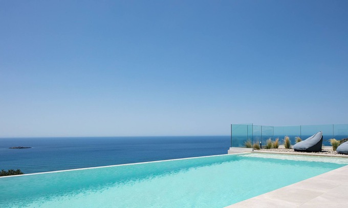 The exterior of Krystallon Estate enjoys amazing sea views, covers 980 m2 and the outdoor facilities in both villas include: