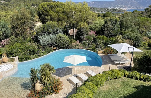 Magnificent villa in the private, guarded estate of Cap Bénat with beautiful views over the bay of Le Lavandou. The house is divided into several living areas, making it ideal for several families.
