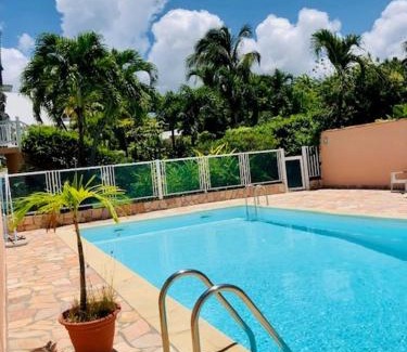 Superbe Duplex résidence privée et piscine offers accommodations in Saint-François, a 14-minute walk from Raisins Clairs Beach. This property offers access to a balcony, free private parking, and free Wifi. The vacation home also offers an outdoor swimming pool and a garden for guests to relax in. Offering direct access to a patio, the air-conditioned vacation home consists of 2 bedrooms. Featuring a terrace with garden views, this vacation home also comes with a flat-screen TV, a well-equipped kitchen with a dishwasher, an oven, and a microwave, as well as 1 bathroom with a bath and a hair dryer. The property has an outdoor dining area.
