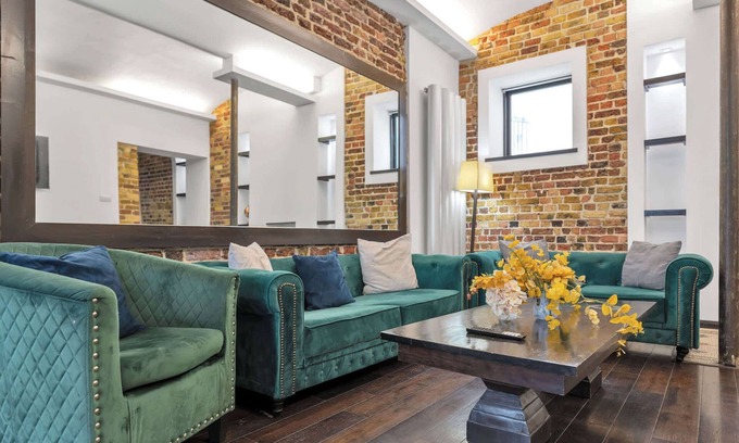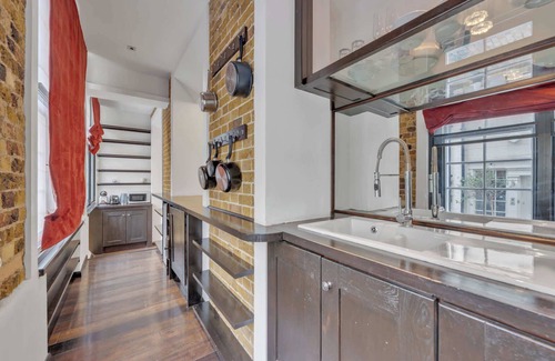 The apartment features a quirky split layout with an indoor staircase and simple wooden furnishings that reflect its historic roots. While the building shows its age in places, it offers a cosy and authentic stay in one of London's most iconic neighbourhoods.