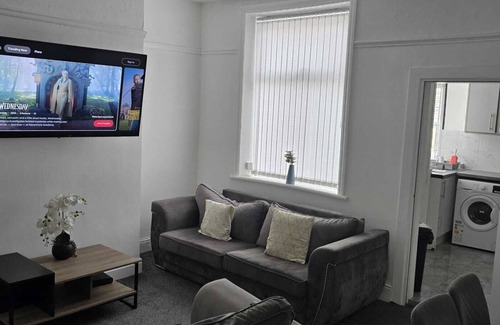Step into comfort at our cozy and modern retreat in the heart of Burnley. Each bright, spacious bedroom has been thoughtfully designed to make your stay as relaxing as possible. Sink into a comfy double bed with fresh linens, enjoy your own flat-screen TV, and take advantage of the in-room tea and coffee facilities – perfect for unwinding after a busy day.