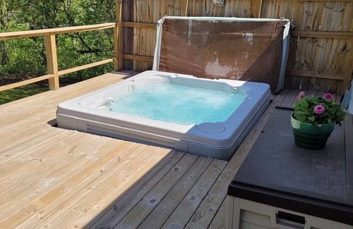 Very private, conveniently located home with year-round outdoor hot tub and several amenities. Don't forget to bring your dog(s)! No pet fees, but we expect you to clean up thoroughly after your dog. We even provide the easily accessible fenced dog run and waste bags.