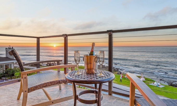 This chic 4th-floor condo has a unique combination of unobstructed views, beach access, and village walkability. Park your car in the reserved underground parking spot and walk everywhere throughout your stay—tide pools, the wedding bowl, restaurants, and museums are all at your fingertips. Be sure to explore Seal Rock, the ultimate spot to watch local seals and sea lions gather!