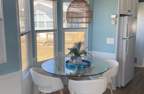This newly renovated open concept lakefront cottage is located in the quiet neighborhood of Surfside. Located right at the end of no through street here you will find peace and tranquility listening to the waves of Lake Erie. Panoramic views from multiple windows inside this cottage will not disappoint! It is only a 2 minute golf cart ride to ELCO beach. At the end of the street is the big Shipwreck park for the kids. no This is a 1 bedroom cottage plus bunk bed area that sleeps 6 . The add a room has a divider to allow for privacy with a queen pullout. The den also has 1 queen pull out. Cottage is very spacious with the open concept feel.