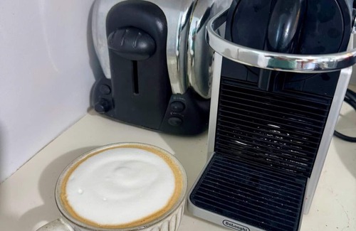 Coffee pods and tea are provided at a rate of one per day for each guest.