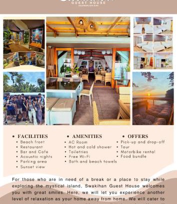 This Swakihan Guest House in Siquijor is well equipped and has all facilities that have been listed below. Please note that these details were shared to us by booking.com for the listed “Swakihan Guest House”. We solely rely on their shared details and are regarded as “accurate”. If you have any concerns about the information or accuracy describing this House, please let us know.