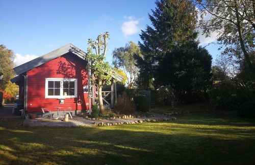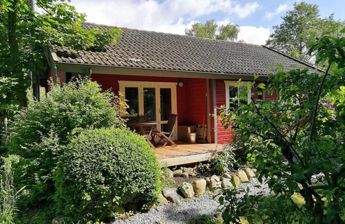 The cozy wooden house in Danish / Swedish construction offers on 60 m² 2 bedrooms each with 1 double bed, a spacious living room, kitchen with dining area and a beautiful garden with 2 terraces and a lawn with swing.