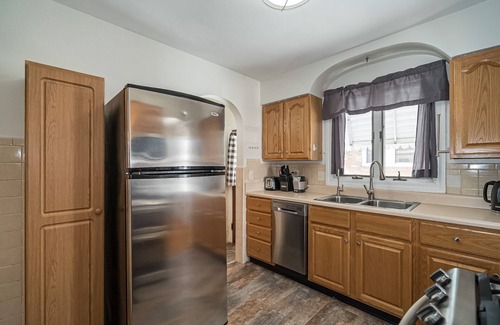 This charming bungalow has been beautifully renovated to offer modern comforts while retaining its classic character. The original archways and hardwood floors create a warm, inviting atmosphere. Make lasting memories in the living room with board games and DVDs, or head to the basement for friendly competition with pool, ping-pong, foosball, and darts. Enjoy outdoor fun with yard games or relax by the fire pit in the backyard.