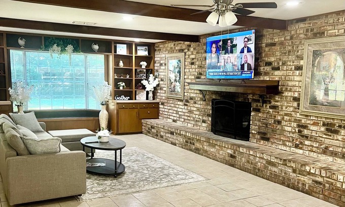 This lovely house in Lufkin offers three queen bedrooms, perfect for a group getaway. With a cozy living room featuring a sofa bed and an office space with a futon, there's plenty of room for everyone to spread out. The two bathrooms ensure no one has to wait in line, and amenities like a hair dryer and iron make packing a breeze. This terrific home base is the ideal spot to unwind after a day of exploring. Kickback, relax, and enjoy everything Lufkin and our house has to offer.