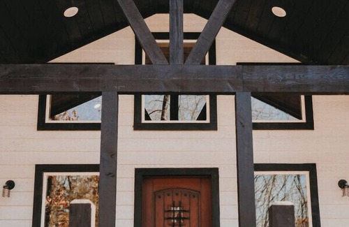 Nestled in the piney woods of Broken Bow`s Kiamichi wilderness, the Brand New Sweet Thang is modern luxury with a farmhouse touch. A romantic and secluded retreat for 2, you will love the roaring fireplace inside or outside fire pit with view of the woods. A King size super comfy bed with full view of the fireplace (not on)from bedroom or living room! Enjoy Hot tub! This Cabin is a 5 Star Property and does have outside surveillance camera! Property has a Hot-tub and outdoor working fireplace as well as a fire pit !