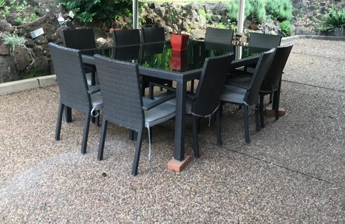 Relax beside the pool, while the kids are swimming on the day recliner or at the table and chairs 🏊♂️👙🏝☀️
