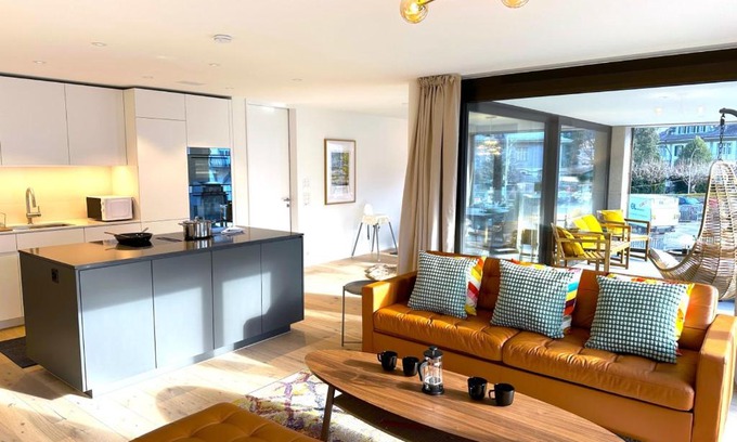SwissHut Modern 5min Interlaken West Station - Apart. Rugen 2 offers accommodations in Interlaken, 14 miles from Giessbachfälle. This vacation home provides an elevator and free Wifi. The property is half a mile from the city center and 11 miles from Grindelwald Terminal. Providing a balcony with mountain views, this vacation home also provides guests with a TV, a well-equipped kitchen with a dishwasher, an oven, and a microwave, as well as 2 bathrooms with a walk-in shower and a hair dryer. The vacation home offers bed linen, towels, and laundry service. During the colder months, guests can enjoy winter sports in the surrounding area. Sion Airport is 61 miles away.