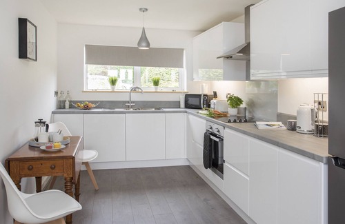 Amenities: Central heating with electric fire. Electric oven, hob, fridge freezer, dishwasher, microwave, washing machine TV, Wifi, DVD, CD player. Travel cot, high chair. Bed linen and towels provided. Enclosed rear patio with decking and garden furniture. Small front lawn. Pubs, shops and restaurants 0.5 miles. Dogs allowed if well behaved.