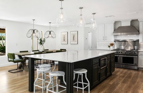 Too much fun in the sun? Head inside and sink into the comfy sectional sofa as you stream your favorite shows and movies on the flat-screen smart TV. If you can’t agree on what to watch, there’s no need to fight over the remote! There is an additional living room in the detached guest house. The modern decor and ample natural light make this a great place to spend time with your whole group.