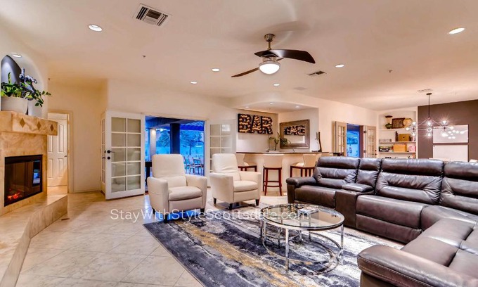 19 miles from Phoenix Convention Center in Scottsdale, SWSSLuxeHouse features accommodations with access to a spa center. This vacation home provides air-conditioned accommodations with a balcony. There's a sun terrace and guests can use free Wifi and free private parking. The vacation home features 7 bedrooms, a fully equipped kitchen with a dishwasher and an oven, a washing machine, and 5 bathrooms with a hair dryer. The accommodation has a fireplace. During warmer months, you can make use of the barbecue facilities and eat on the private patio. SWSSLuxeHouse also offers an outdoor swimming pool and a hot tub for guests to relax in. A car rental service is available at the accommodation. Copper Square is 19 miles from SWSSLuxeHouse, while OdySea Aquarium is 5 miles away. Scottsdale Airport is 1.2 miles from the property.