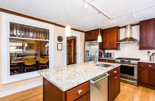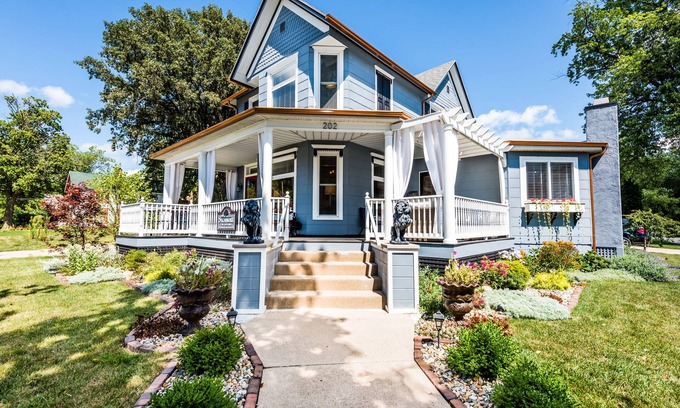 Sycamore Guesthouse, where contemporary furnishings meet within a restored 1880's Victorian home with all modern conveniences for today's needs. Each bedroom has its own private bathroom with fully tiled Euro showers. Beds are Queen Luxury Firm Plush mattresses & quality bedding set upon modern upholstered platform beds. There are 6 queen beds, 2 full/double beds, 2 twin airbeds and 1 pack-n-play crib giving room for 14 adults + children. Just across the street from Journeyman Distillery. We offer your group 5+ bedrooms & 5-1/2 private baths. The covered wrap-around porch is the perfect place to see and be seen as we are located in the heart of Three Oaks Village. The kitchen is well stocked and equipped for most every cooking / preparation needs. We also offer an outdoor gas grill, yard & fire pit (available May-October & we do not supply firewood.) 5 outdoor security cameras (2 on porch, 1 at garage and 2 in yard) and video doorbell are dis-armed during your stay.