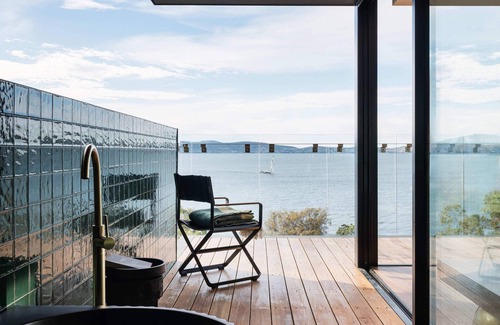 Luxury awaits, in the exclusive new waterfront penthouse, with two ensuite bedrooms, private terrace, deck bath and outdoor fireplace, for beautiful evenings under the Tasmanian stars.