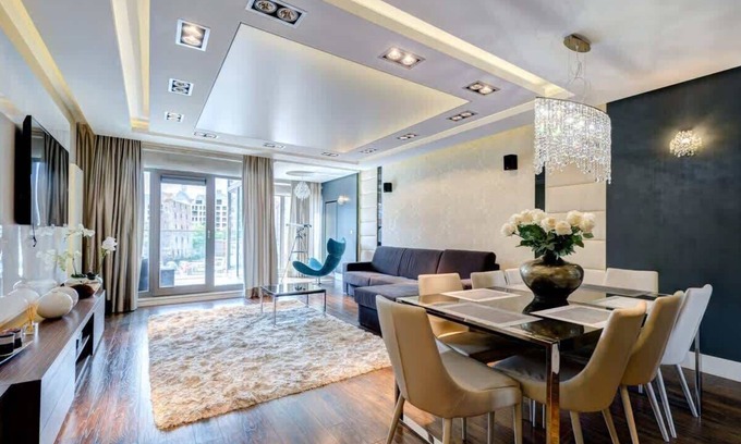 The apartment is a luxury space of 98 m², located on the second floor of a prestigious building in the heart of the city. Designed for up to six people, it combines modern design with a cozy atmosphere.