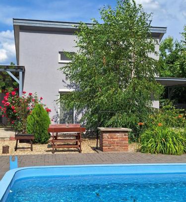 Providing inner courtyard views, Szomszéd Apartmanok in Tiszafüred features accommodations, a seasonal outdoor swimming pool, free bikes, a garden, and barbecue facilities. The property is around 30 miles from Egerszalók Thermal Spring, 22 miles from Nine-arched Bridge, and 30 miles from De la Motte Castle Noszvaj. The apartment provides rooms with air conditioning, free private parking, and free Wifi. Each unit has a terrace, a fully equipped kitchenette with a microwave, a dining area, and a flat-screen TV, while the private bathroom includes a bath or shower. A toaster, a fridge, and stovetop are also provided, as well as a coffee machine and a kettle. At the apartment complex, all units come with bed linen and towels. You can play table tennis and darts at the apartment, and the area is popular for cycling and hiking. With an outdoor fireplace and a picnic area, this apartment offers plenty of opportunities to relax. Debrecen International Airport is 50 miles away.