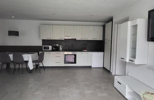 "Szomszéd ház" in Villány provides accommodations with a garden and barbecue facilities. Guests staying at this apartment have access to a terrace. The apartment offers rooms with air conditioning, free private parking, and free Wifi. The units come with parquet floors and feature a fully equipped kitchen with a dishwasher, a dining area, a flat-screen TV with cable channels, and a private bathroom with walk-in shower. An oven, a microwave, and fridge are also offered, as well as a coffee machine and a kettle. At the apartment complex, the units include bed linen and towels. UNESCO World Heritage – Cella Septichora Visitor Centre is 22 miles from the apartment, while Zsolnay Cultural Quarter is 21 miles from the property. The nearest airport is Pécs-Pogány International Airport, 19 miles from "Szomszéd ház".