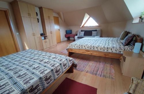 Offering a garden, Tóparti Villa - Balatonboglár features accommodations in Balatonboglár. This beachfront property offers access to a balcony, free private parking, and free Wifi. Outdoor seating is also available at the villa. Featuring a terrace and lake views, the spacious villa includes 4 bedrooms, a living room, satellite flat-screen TV, an equipped kitchen, and 3 bathrooms with a bath and a shower. Towels and bed linen are offered in the villa. There's also a seating area and a fireplace. Kodály Strand is a few steps from Tóparti Villa - Balatonboglár, while Zamardi Adventure Park is 22 miles from the property.