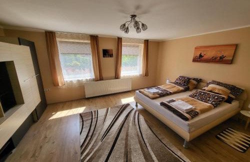 Tölgyes - völgy Vendégház is a recently renovated apartment in Makkoshotyka where guests can make the most of the garden and barbecue facilities. This property offers access to a patio, darts, free private parking, and free Wifi. Zemplin Castle is 20 miles from the apartment. Offering a terrace and mountain views, the spacious apartment includes 2 bedrooms, a living room, satellite flat-screen TV, an equipped kitchen, and 1 bathroom with a bath. Towels and bed linen are offered in the apartment. The property has an outdoor dining area. For guests with children, the apartment offers outdoor play equipment. Guests can also warm up near the outdoor fireplace after a day of skiing.