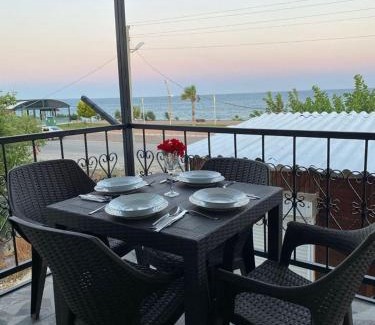 Türkmen Apart provides beachfront accommodations in Demre. 1.6 miles from Sülüklü Beach and 2.2 miles from Saint Nicholas Church, the property provides a garden and barbecue facilities. On clear days, guests can head outside to enjoy the condo hotel's outdoor fireplace, or simply kick back and relax. At the condo hotel, some units have a private entrance, dining area, fireplace, and dishwasher. A terrace with sea view, a satellite flat-screen TV, and air conditioning are provided in some units. At the condo hotel, every unit includes a private bathroom. A bicycle rental service and a private beach area are featured at the condo hotel. Myra Rock Tombs is 3.1 miles from Türkmen Apart, while Kekova Sunken City is 15 miles away.