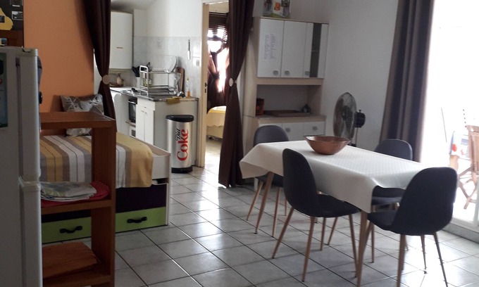 Pleasant apartment located 2 minutes walk from the beach Planch trade winds, very quiet, very well equipped and most comfortable. It is close to shops, bakeries, restaurants and health facilities. It is fully air conditioned and benefits from Wi-Fi, wired internet and TV (ZEOP: FO). A terrace will allow you to start your day in a good mood by taking your breakfast with the melody of the surrounding birds. You can continue your day by relaxing in the sun on the beach or opt for water activities such as pedal boats, kayaks, paddle or simply diving and snorkeling to see the colorful fish of the ocean less than 1 m Secure the edge of the lagoon. Most athletes can also keep fit on the fitness trail nearby jogging or playing on the edge of the ocean from the beach of Trou d'eau with black rocks, a beautiful performance of 4 km to go. Toddlers, meanwhile, can benefit from a play area at the end of such day to finish in style. This apartment is really the ideal place to spend a peaceful holiday and safely away from home while having the feeling of being at home. The city of Saline les Bains remains a wooded location where it is good to walk day or late in the day. Also feel free to contact us for further information or to book. We are at your disposal.