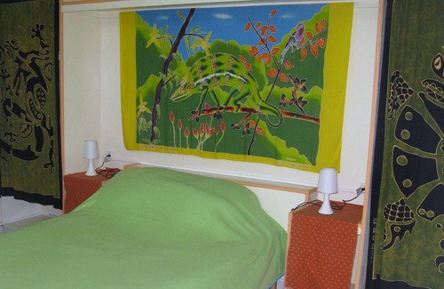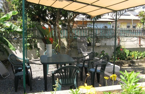 In Tampon, in a quiet and green area, 5 'walk from the city center and the bus station, surrounded by tropical vegetation, birds of paradise, anthuriums, bananas, vanilla, "Tikaztampon" offers a T3 on the ground floor garden, 55m², with independent entrance, composed of 2 bedrooms and a living room with kitchen area. The bathroom is independent as well as the toilets. You have a terrace, a garden area equipped with tables, chairs, deckchairs and barbecue.