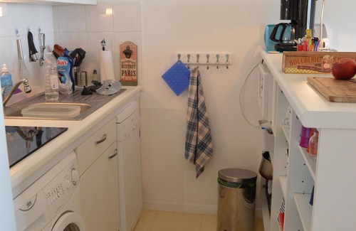The fitted kitchen (large fridge, washing machine, dishwasher, microwave, oven, electric hob, coffee maker, extractor hood ...) is open to the dining area and living room (TV, radio, DVD player)