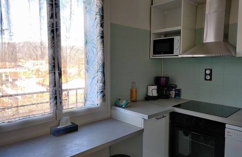 T3 quiet and bright city center is located in Prades. T3 quiet and bright city center provides accommodation, featuring Fireplace/Heating, Child Friendly, Kitchen, among other amenities. This Apartment features Fireplace/Heating, Child Friendly, Kitchen, to make your stay a comfortable one.