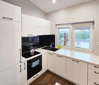 This apartment provides accommodations with a balcony. The accommodation features an elevator and private check-in and check-out for guests. With free Wifi, this 1-bedroom apartment offers a flat-screen TV, a washing machine, and a fully equipped kitchenette with a dishwasher and fridge. The accommodation is non-smoking. During the colder months, guests can enjoy winter sports in the surrounding area. Outdoor play equipment is also available for guests at Tabago Studio 38 Tomaszów Mazowiecki. Lodz Wladyslaw Reymont Airport is 34 miles from the property.