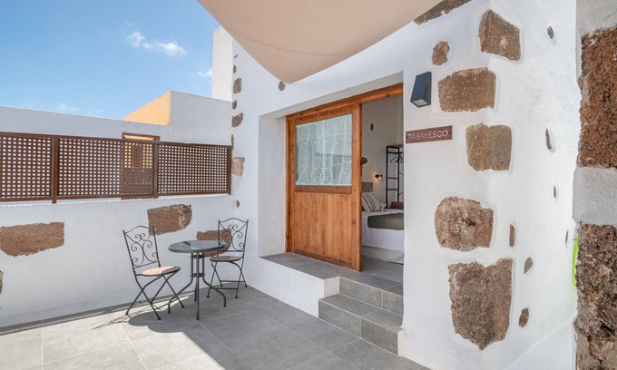 Arrieta Costa Rural in Tabayesco offers you a shared outdoor pool with mountain views, a sun terrace inspired by César Manrique, a shared open terrace, and an outdoor shower for your relaxation.