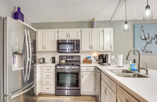 KITCHEN: Fully equipped w/ stainless steel appliances, breakfast bar seating, microwave, Keurig & drip coffee maker, tea kettle, toaster, knife set, blender, Crock-Pot, spices, cooking basics, dishware & flatware