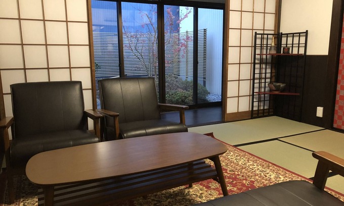 The ground floor has a living room, large kitchen / dining room, bathroom, toilet, and a beautiful Japanese style garden. The upper floor is equipped with two bright rooms, one with two double beds and the other three futons, so that a group of six can comfortably rest their heads in this home.