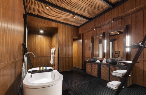 Taj Exotica Resort & Spa, Andamans offers 54 air-conditioned accommodations with DVD players and minibars. Rooms open to furnished patios. Accommodations offer separate sitting areas and include day beds. LED televisions come with satellite channels. Bathrooms include separate bathtubs and showers with deep soaking bathtubs and rainfall showerheads. Bathrooms are also outfitted with bathrobes, slippers, and complimentary toiletries.