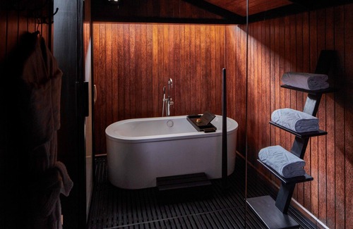 Recreational amenities at the hotel include an outdoor pool, a steam room, a 24-hour fitness center, and complimentary bicycles.